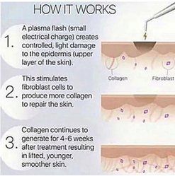 Fibroblast Plasma skin treatment is a non-surgical, skin-tightening procedure that rejuvenates the skin and has very little side effects or downtime and can be used for eye lift, loose tummy skin tightening, skin tag removal, mole removal, sun and age spot removal, acne scar damage, smokers lines on the upper and lower lips, diminish stretch marks, tightening of the loose skin on the neck and cheeks, crow's feet, and reduction of fine lines.